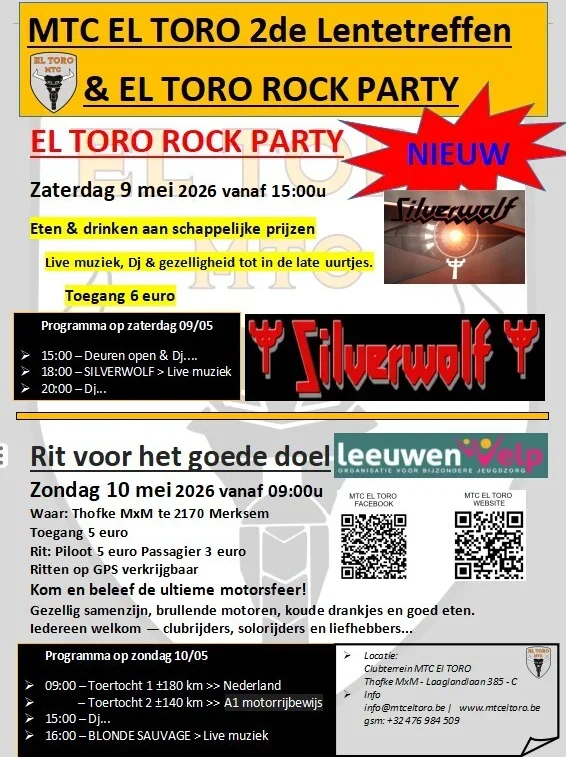 MTC El Toro organiseert voor de tweede keer hun Lentetreffen. Dit maal op zondag 10 mei 2026. De opbrengst gaat naar Leeuwenwelp, een organisatie voor bijzondere jeugdzorg.